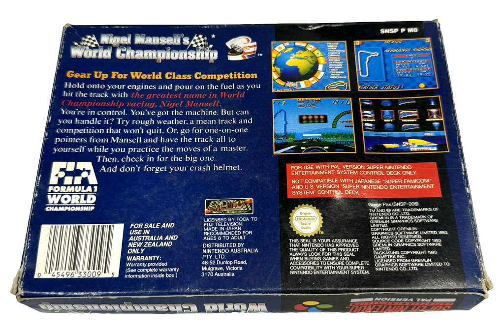 Nigel Mansell's World Championship Super Nintendo SNES Boxed *Complete* PAL (Preowned)